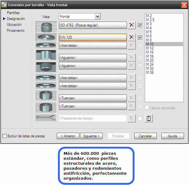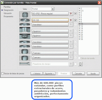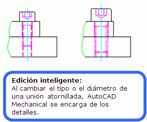 Un sistema de CAD mecánico debe ofrecer una completa biblioteca de piezas estándar. AutoCAD Mechanical pone a mi disposición un amplio surtido de piezas normalizadas de uso habitual en el diseño mecánico.