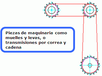 Además de las piezas estándar, el diseño y la ingeniería mecánica utiliza componentes de maquinaria como ejes, cadenas y correas de transmisión, muelles y levas. AutoCAD Mechanical ayuda calcular y dibujar estos elementos de maquinaria.